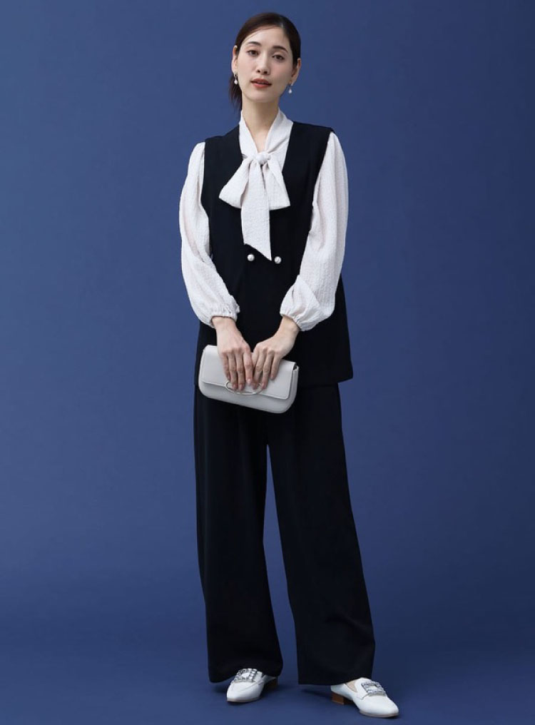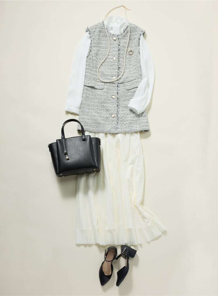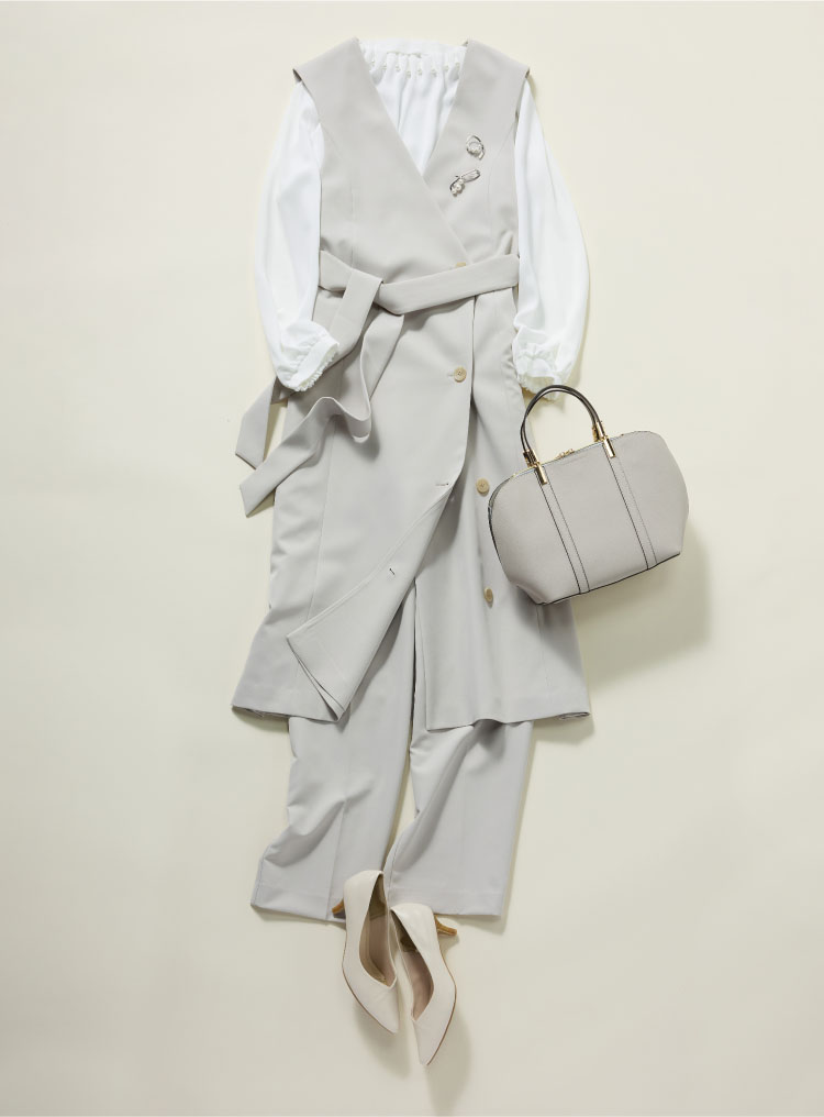 ジレなら女性らしく軽やかな印象に