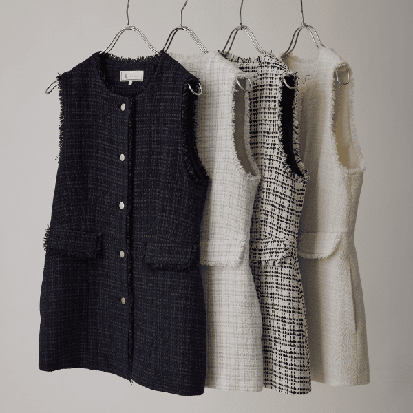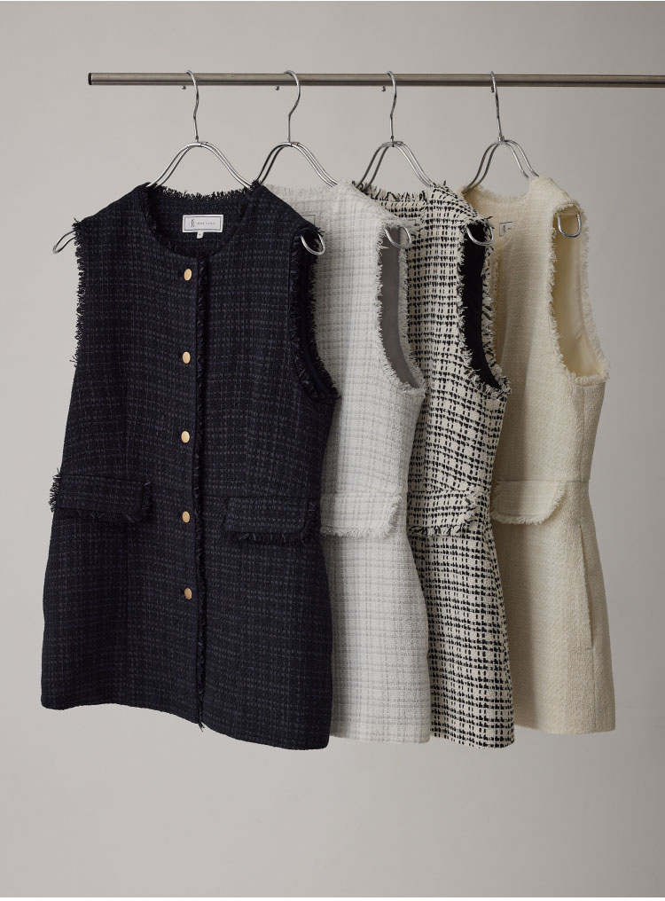 ファンシーツイードが着映えるジレ。